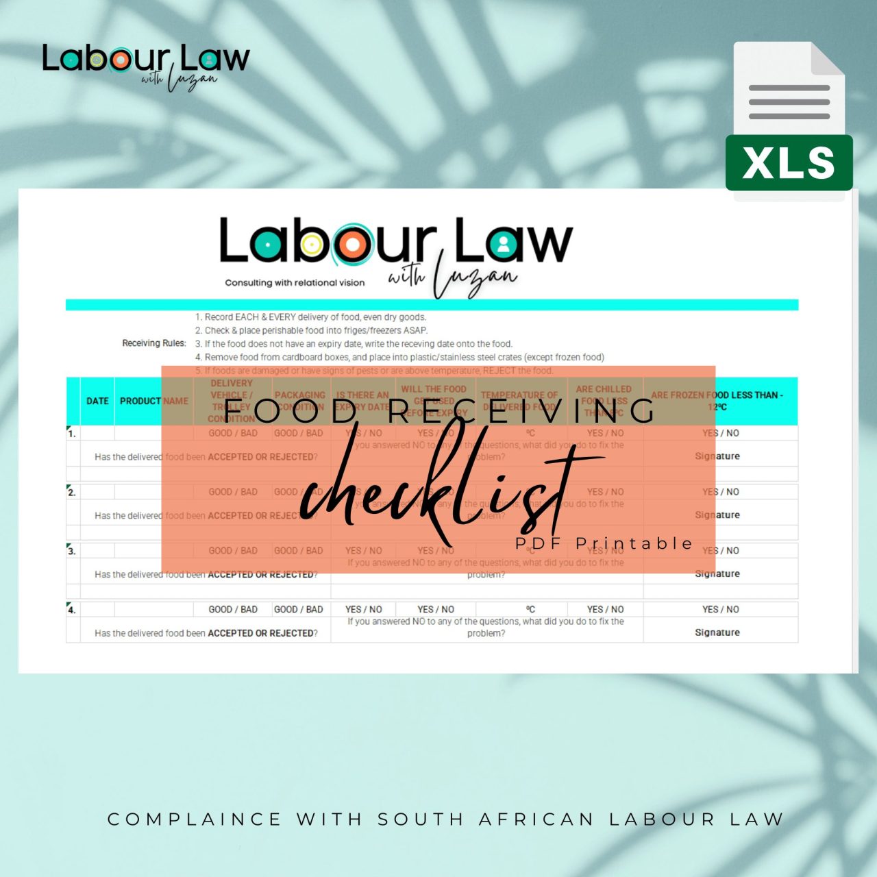 As a business owner or entrepreneur in South Africa, it’s essential to prioritize health and safety in your food handling and receiving processes. Our comprehensive Food Receiving Checklist Template is designed to help you comply with South African Labour Law and maintain a safe food environment. This digital file download includes a professional template that covers all aspects of food receiving, from recording deliveries to checking expiry dates and temperatures.
