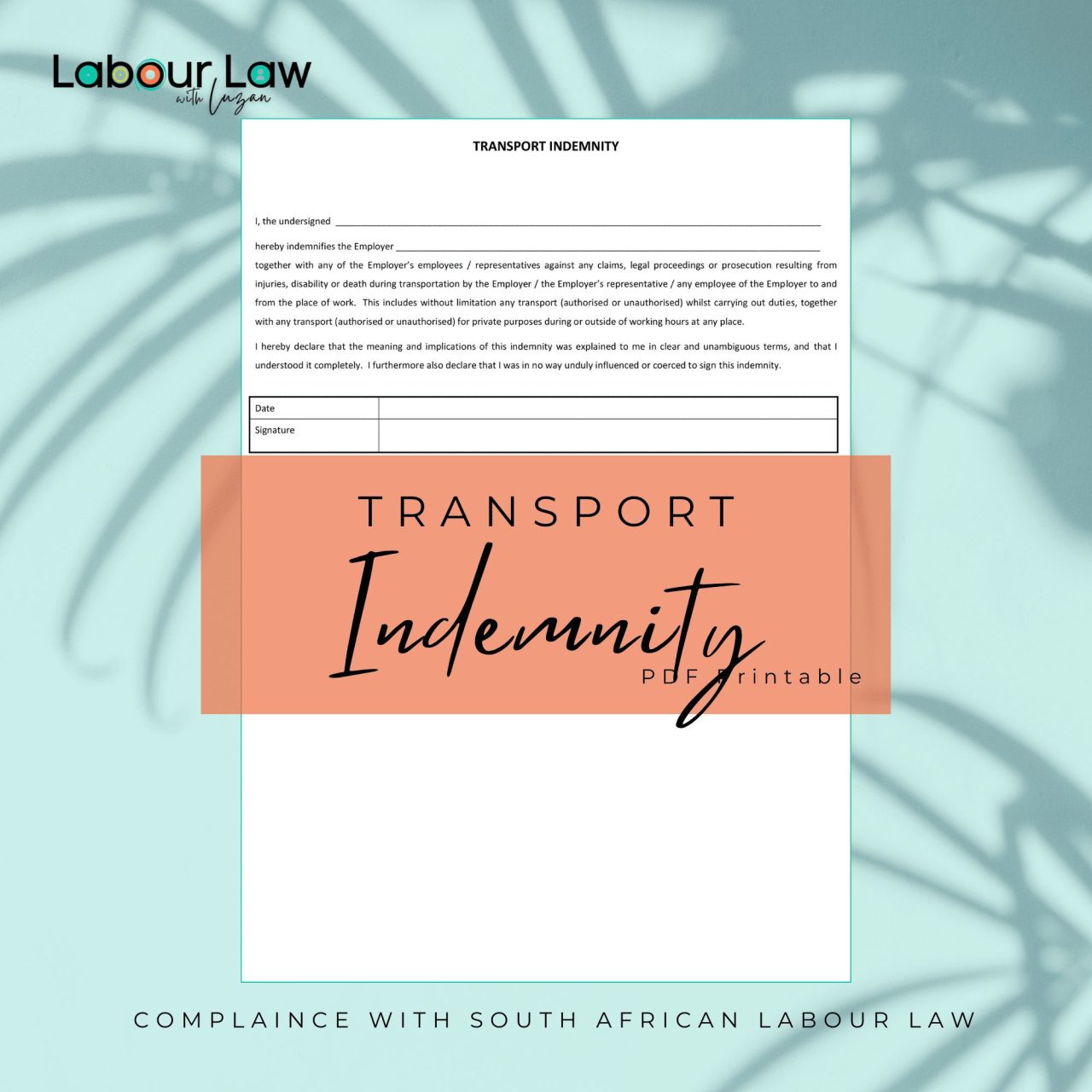 • Legal Compliance: The template ensures your transport indemnity policy adheres to all relevant South African Labour Law requirements.