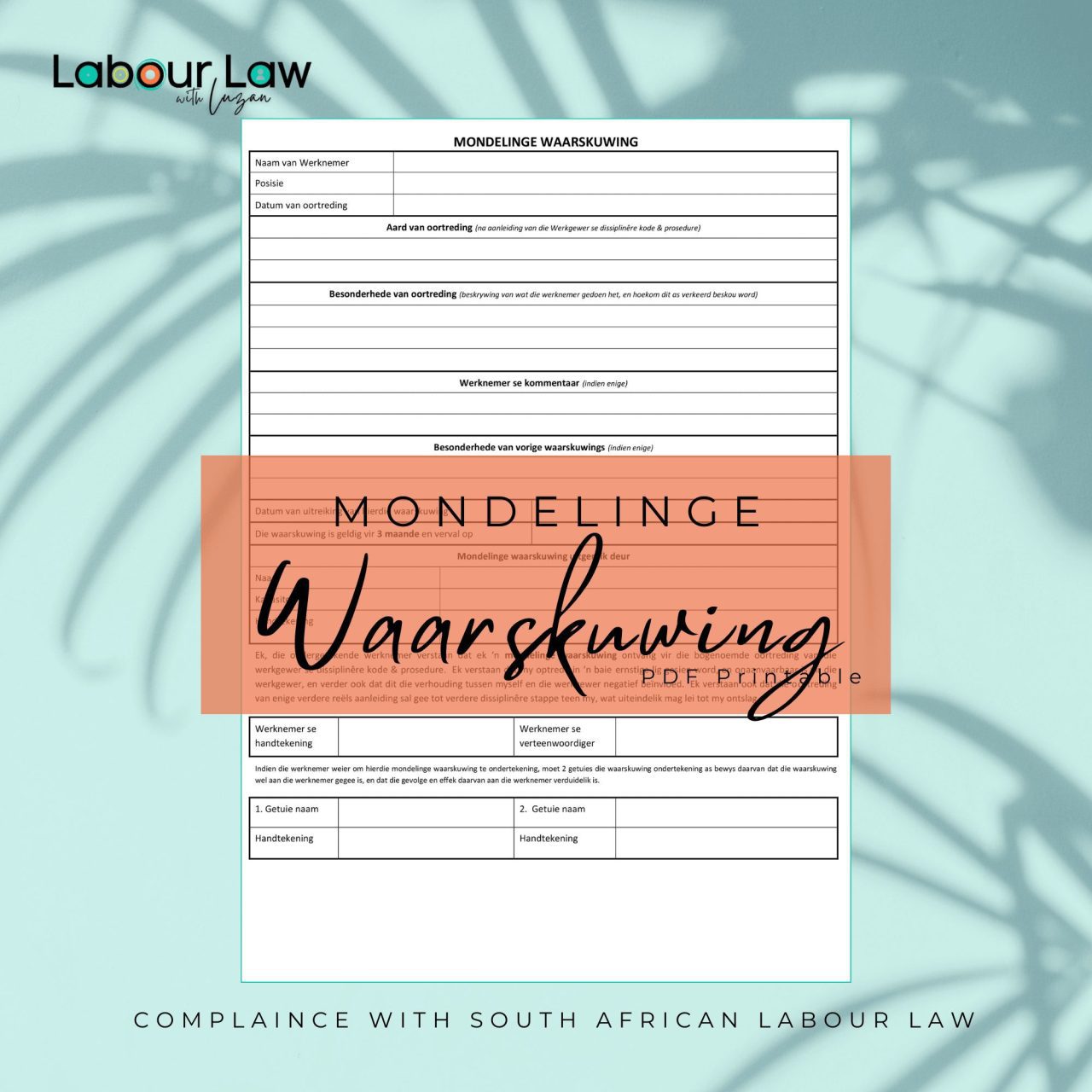 Be the first to review “Verbale Waarskuwings Sjabloon – Voldoen aan SA Arbeidsreg”